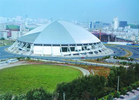场馆简介:长春五环体育馆是具有国际水准的多功能、超大型现代化体育设施,是在长春市政府的支持下,长春市体委与长顺体育综合开发公司共同合作的结晶。它坐落在南岭体育中心建筑群体之中。总建筑面积为31192平方米,长轴跨度192米,短轴跨度146米,中心高度50米,可容纳观众12000人。馆内地面有塑胶面、木质地板面和冰面三部分组成,可进行室内田径、速滑、篮球等23项比赛,并可举办大型集会、文艺演出、商业博览等活动。赛会期间,乒乓球、羽毛球、举重、摔跤、柔道、跆拳道6项目比赛将在长春五环体育馆举行。