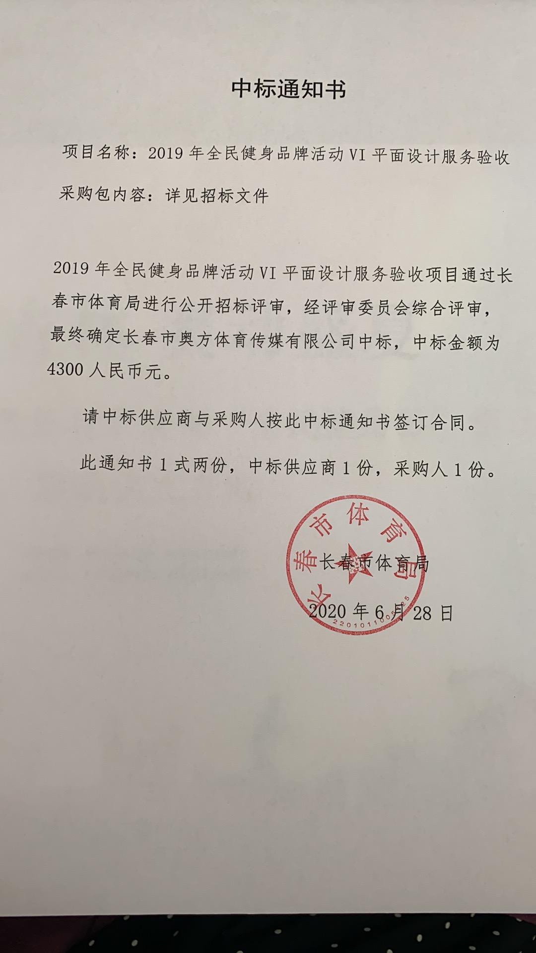 中标通知书