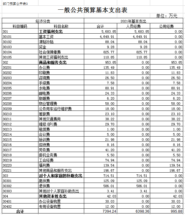 三、一般公共预算基本支出表