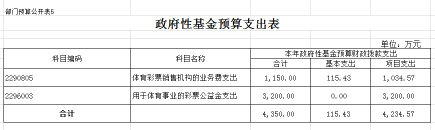 政府性基金预算支出4350万元,用于保障足球即时-雷速即时比分 系统各预算单位为完成特定的体育事业任务及体育事业发展目标发生的人员经费支出、日常经费支出和专项经费支出。