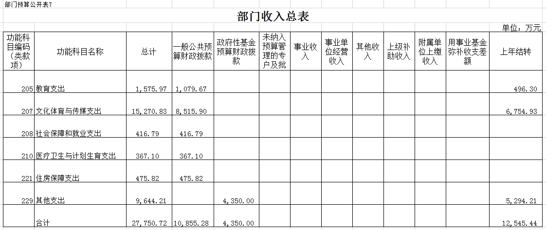 七、部门收入总表