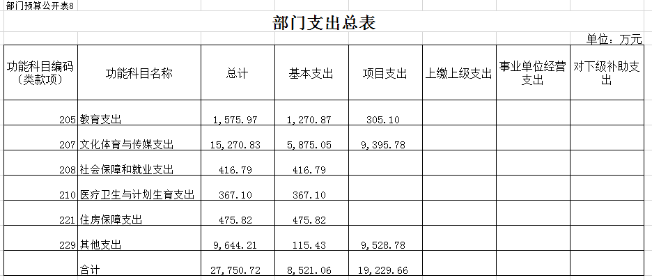 八、部门支出总表